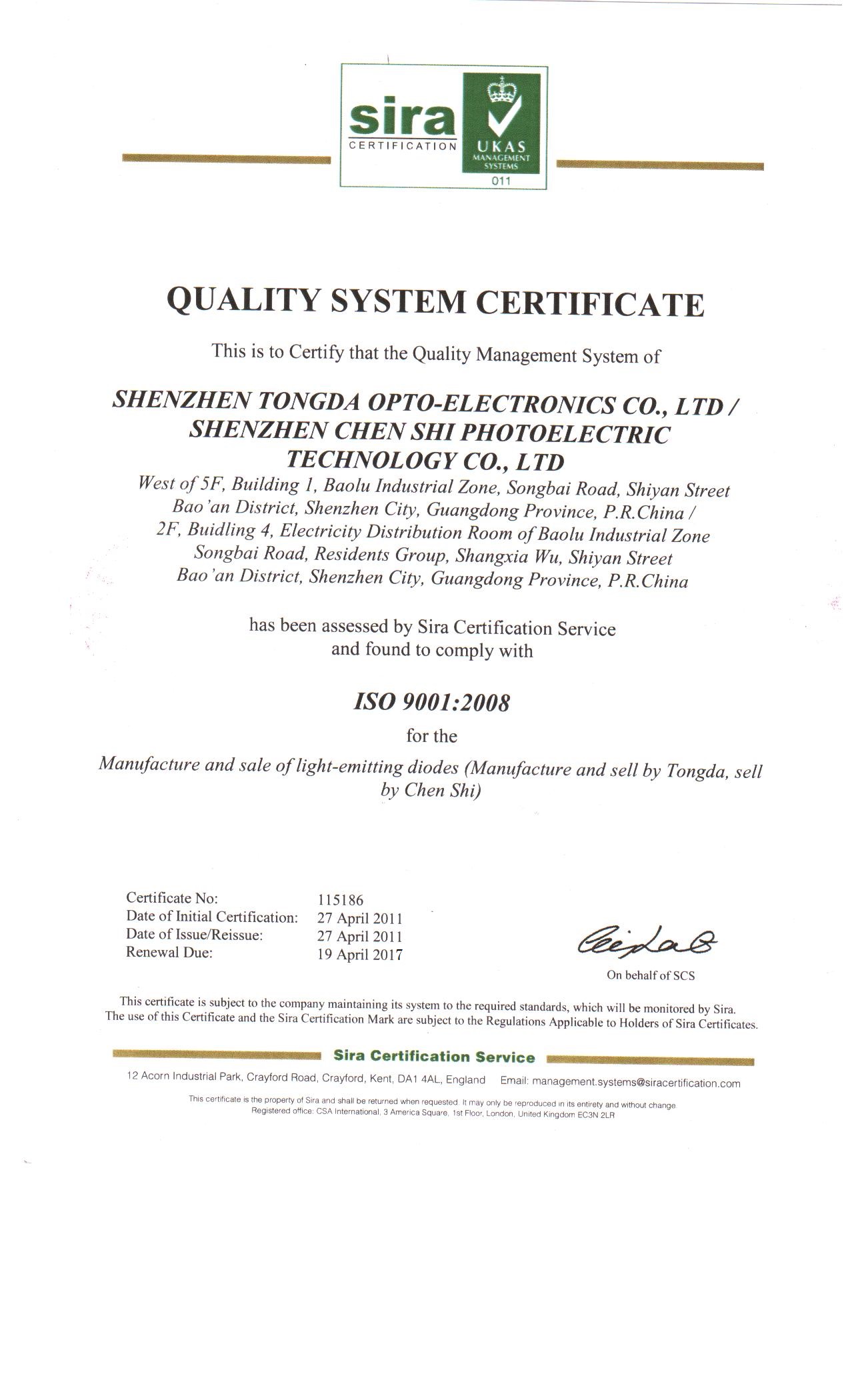ISO質量證書